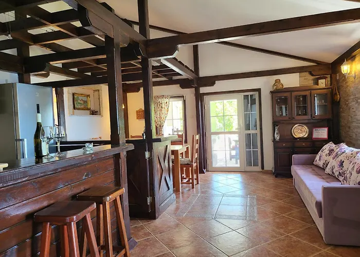 An oven, a cooktop, and kitchenware in a fully furnished kitchen as well as a bidet, a separate toilet, and a shower in a bathroom are also included. Carsko Selo Blizikuce Villa welcomes you with garden views.
